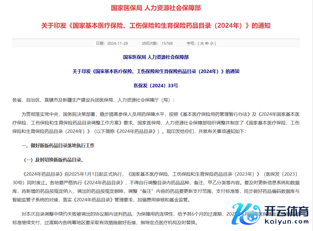 每经AI快讯,11月28日,国度医保局、东谈主力资源社会保障部印发《国度基本医疗保障、工伤保障和生养保障药品目次(2024年)》的见告。《2024年药品目次》自2025年1月1日起慎重践诺开云体育,《国度基本医疗保障、工伤保障和生养保障药品目次(2023年)》(医保发〔2023〕30号)同期废止。各地要严格践诺《2024年药品目次》,不得自行调遣目次内药品品种、备注、甲乙分类等施行。对本次目次调遣中续约失败被调出的公约期内酌量药品开云体育,为保障用药鸠合性,给以其6个月的过渡期,2025年6月底前医保基金可按原支付模范不绝支付,过渡期内各统筹地区要领受有用法度作念好衔尾,引导定点医疗机构实时替换。