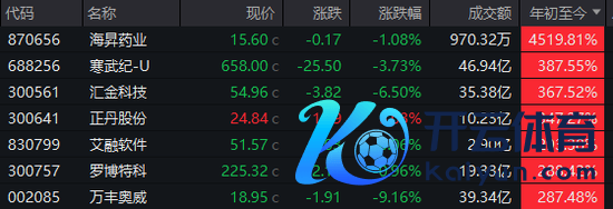 除开海昇药业这家市值仅12亿元的新上市公司外,现在总市值2747亿元的寒武纪,好像才是这一年不少投资者眼中“最靓的仔”,全年涨幅高达387.55%;而紧随后来的汇金科技、正丹股份、艾融软件等,则隔离高涨367.52%、347.27%、293.38%。