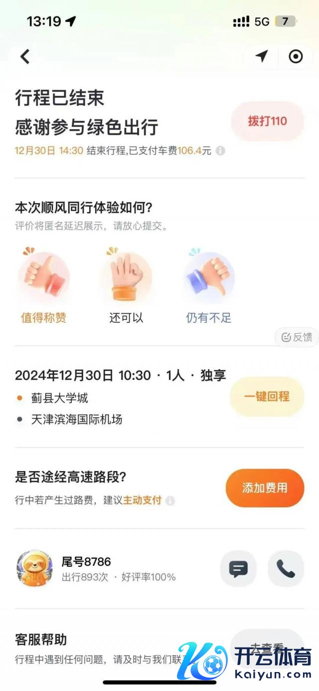 1 月 4 日,羊城晚报记者联系上爆料网友小康。小康是别称在校大学生,本年 19 岁。据她解释,2024 年 12 月 30 日上昼,她在嘀嗒出行下单了独享顺风车,从天津蓟州大学城赶往天津滨海外洋机场。上车前,司机联系小康称车上有别称我方的支属,要是她不防范,不错为她减少 15 元车资。