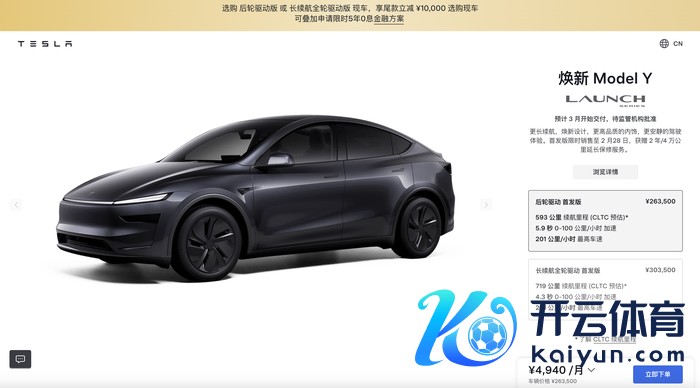 1月10日,焕新版Model Y认真登陆特斯拉中国官网,同期上线首发版车型,预售价26.35万元起,新车在外不雅、座舱、续航等方面迎来了不同进度的升级。