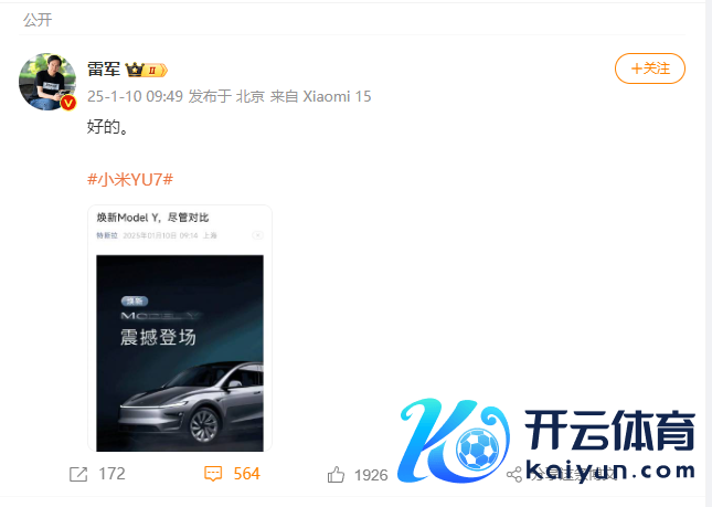 对于特斯拉Model Y的上线,雷军带“小米YU7”话题转发特斯拉推文《焕新Model Y,尽管对比》并批驳:“好的。”