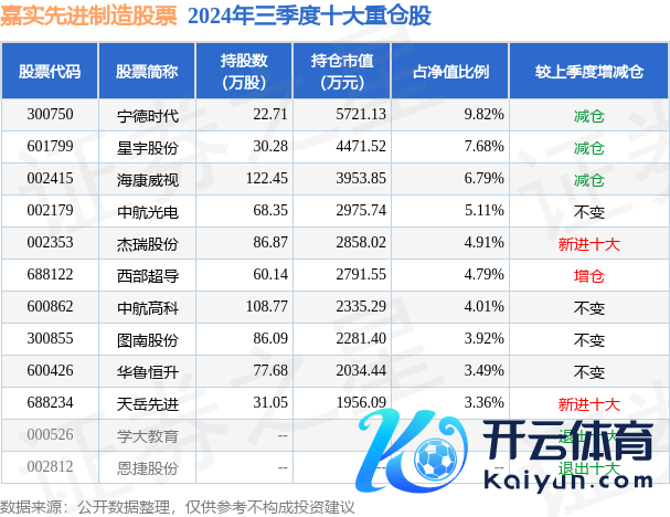 嘉实先进制造股票为股票型基金,把柄最新一期基金季报表露,该基金金钱建立:股票占净值比90.12%,无债券类金钱,现款占净值比7.16%。基金十大重仓股如下: