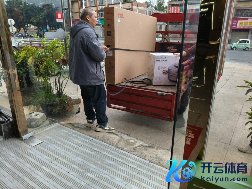(责任主谈主员将家电装车准备送货上门财联社记者摄)