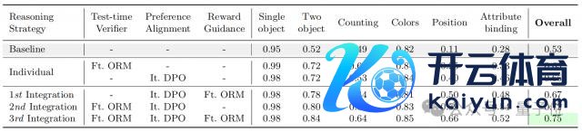 践诺着力标明,结合 DPO 和测试时考据后,模子在 GenEval 标的上的举座升迁达 27%,高出了单独使用 DPO 或测试时考据的有打算。