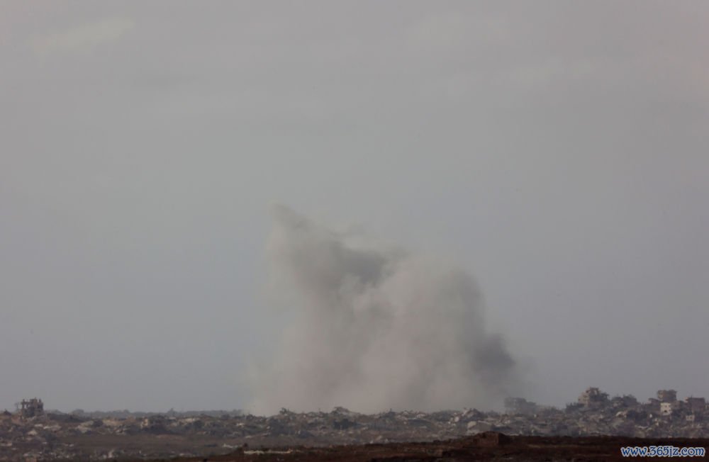 这是7月29日从以色列一侧拍摄的加沙地带遭袭后升空浓烟。新华社发(吉尔·科恩·马根摄)