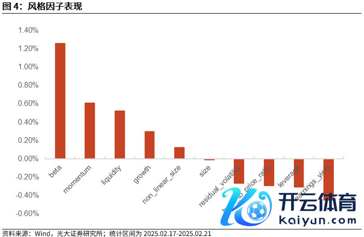 本周密市集股票池中,beta因子和动量因子取得昭着正收益(1.26%和0.61%),市集动量效应权贵;盈利因子和杠杆因子取得昭着负收益(-0.45%和-0.31%)。