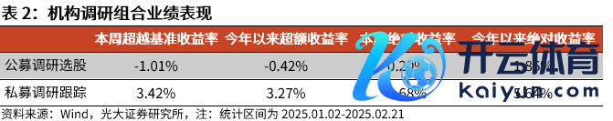 本周私募调研追踪策略获取正逾额收益。公募调研选股策略相对中证800获取逾额收益-1.01%,私募调研追踪策略相对中证800获取逾额收益3.42%。