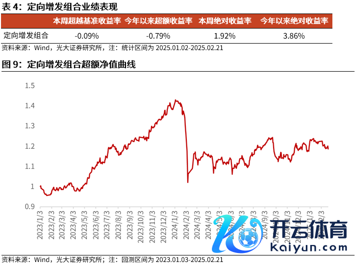 本周定向增发组合相对中证全指逾额收益出现回撤,定向增发组合相对中证全指获取逾额收益-0.09%。