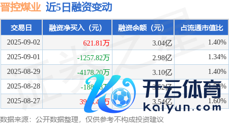 本站音讯开云体育(中国)官方网站,9月2日,晋控煤业(601001)融资买入2691.92万元,融资偿还2070.11万元,融资净买入621.81万元,融资余额3.04亿元。